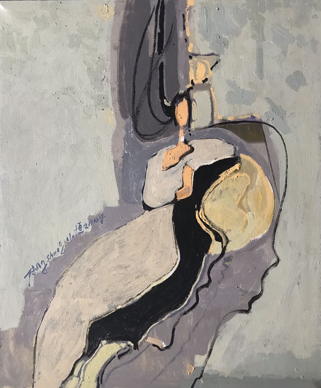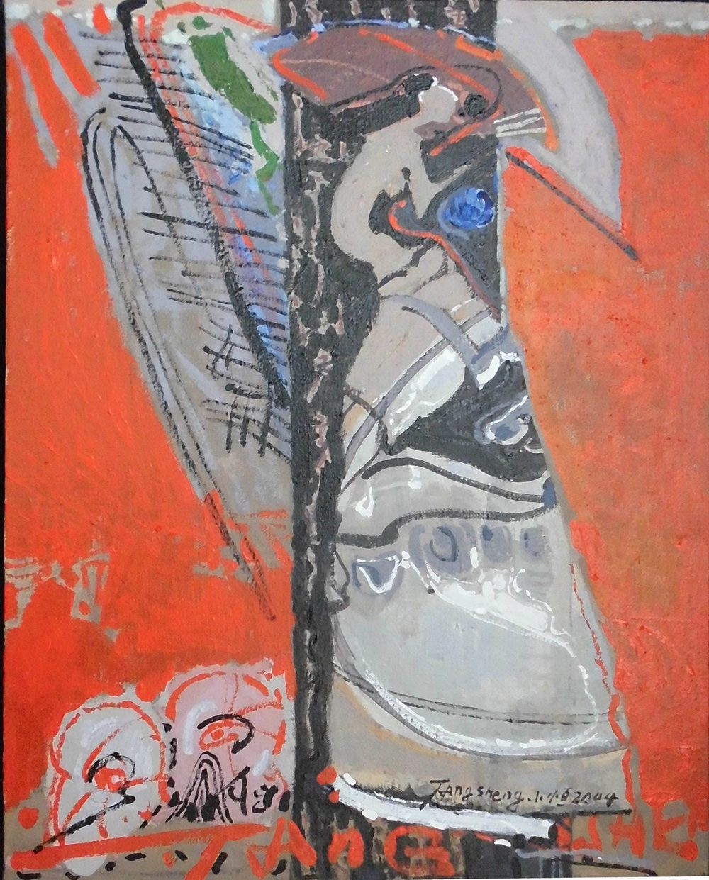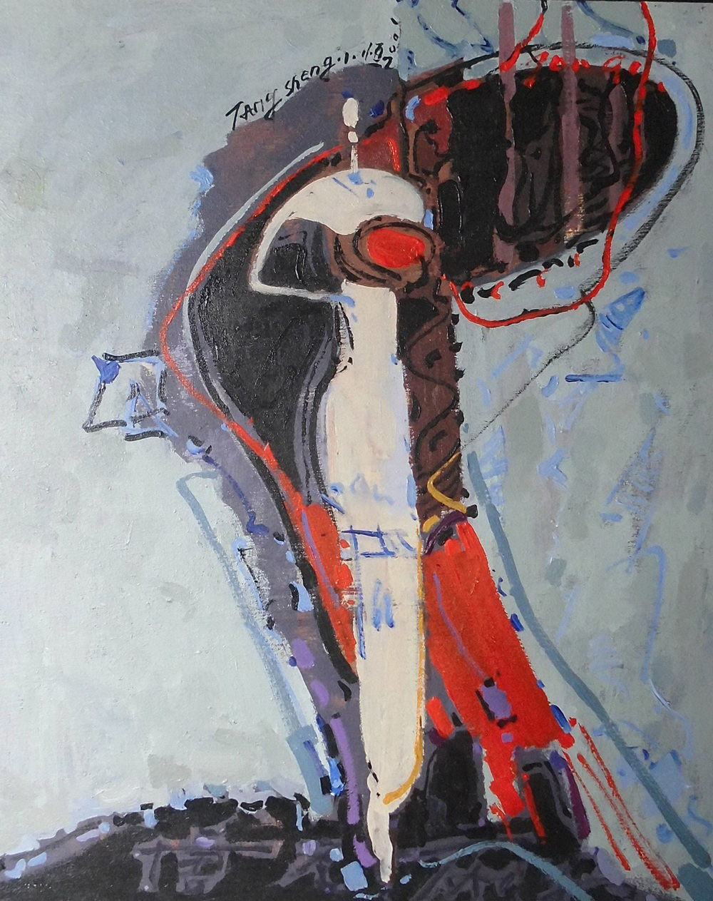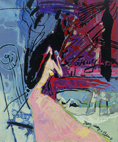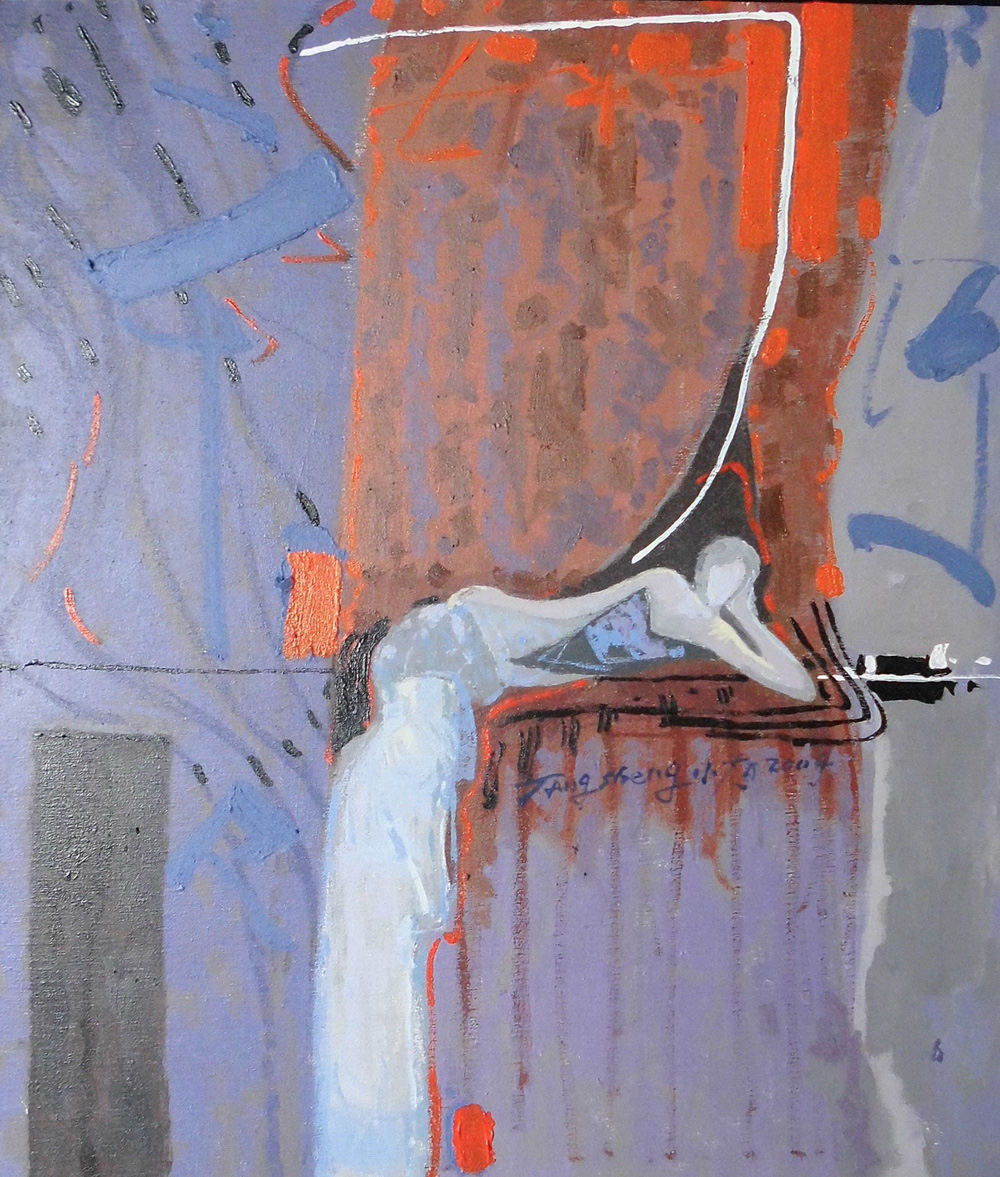 欧洲人不懂汉语,不懂歌词内容,却爱听中国歌。我想他们是喜欢歌里的节奏,韵味,在用这些节奏,韵味谱写自己的生活。而视觉艺术色彩就是音符,形就是音符的载体。在抽象画里:“勿怀旧,倡恋新”。