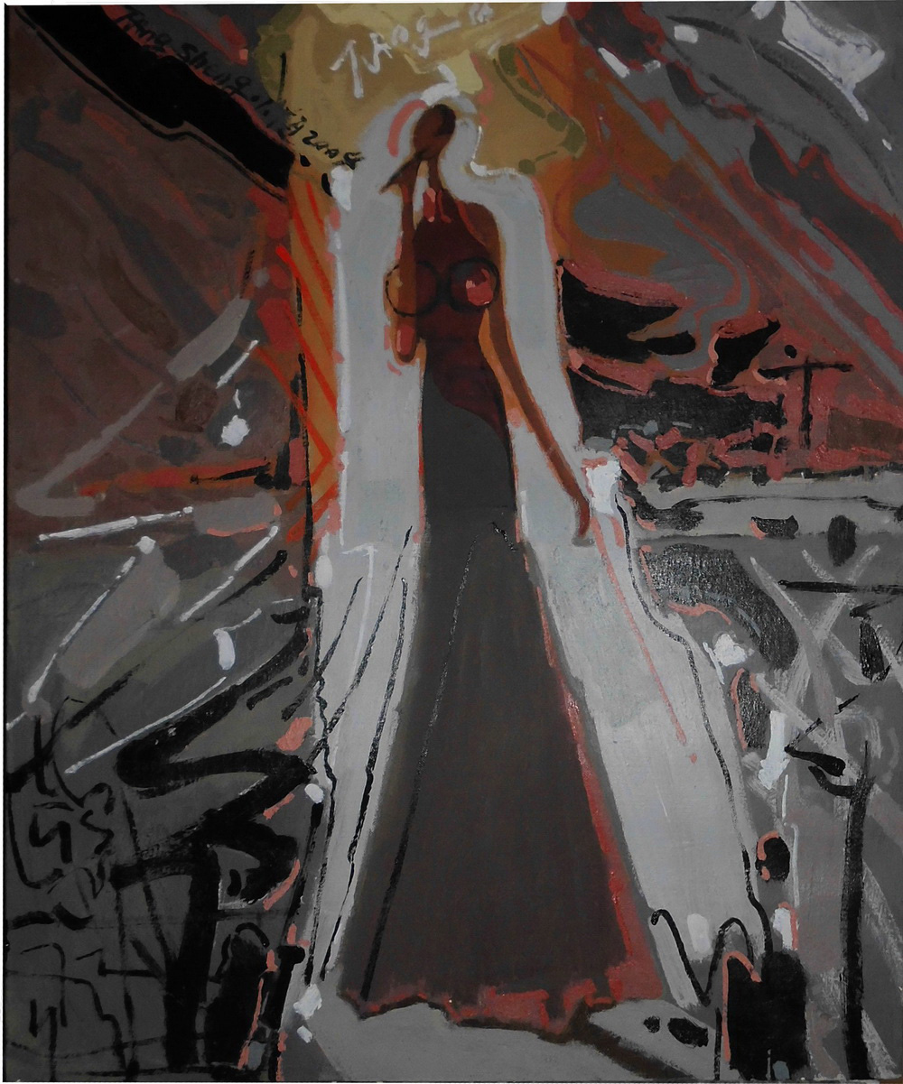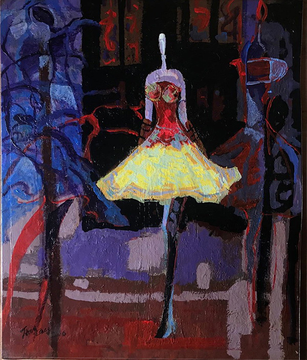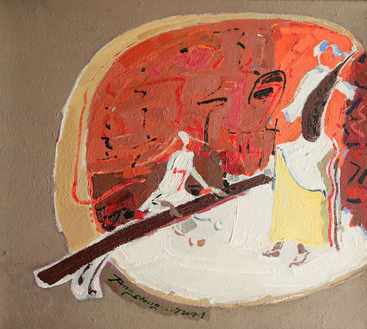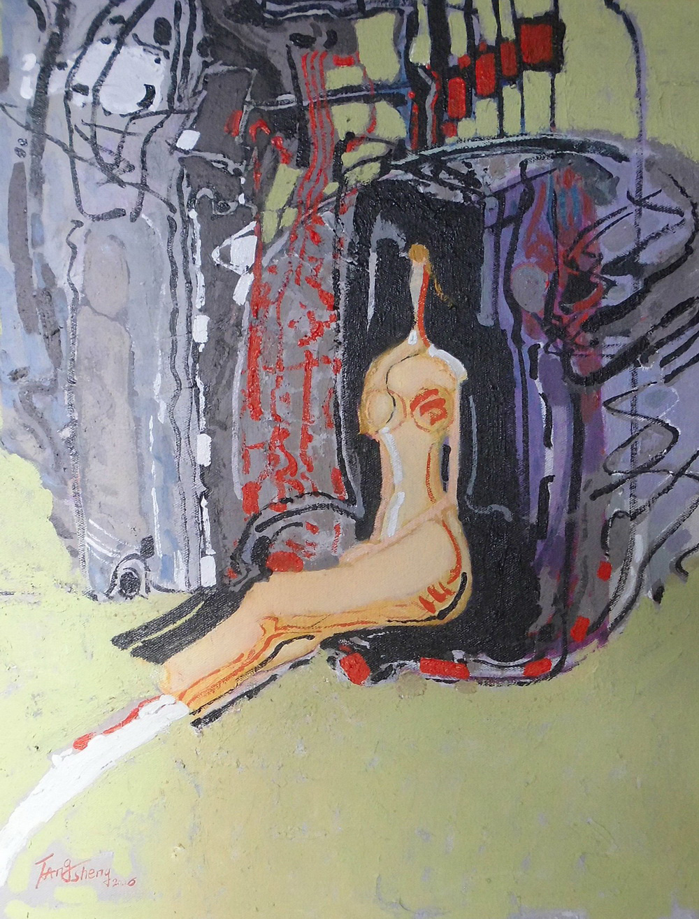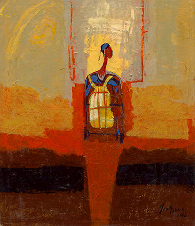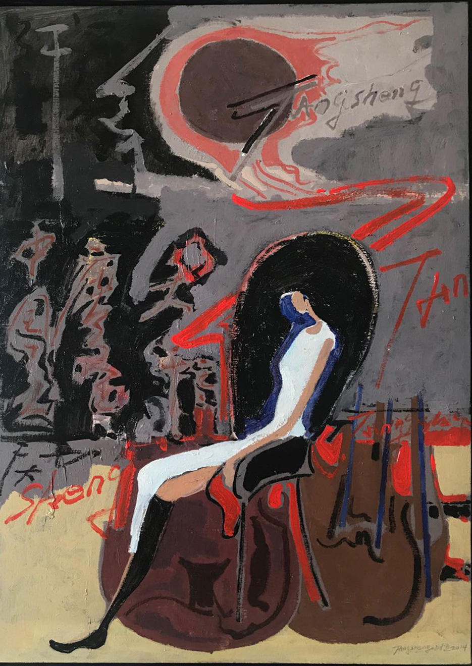 欧洲人不懂汉语,不懂歌词内容,却爱听中国歌。我想他们是喜欢歌里的节奏,韵味,在用这些节奏,韵味谱写自己的生活。而视觉艺术色彩就是音符,形就是音符的载体。在抽象画里:“勿怀旧,倡恋新”。